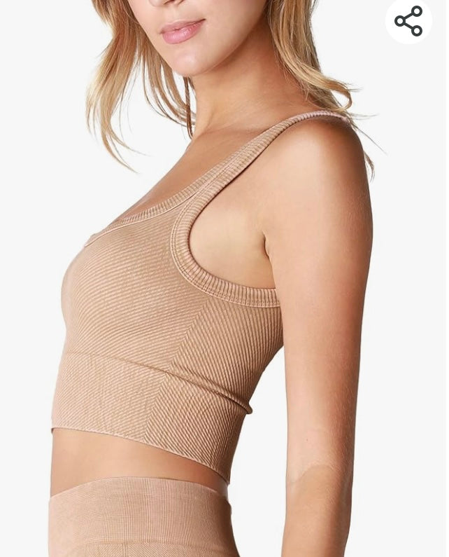 Vintage Chevron Highneck Crop Top | Vintage Mocha