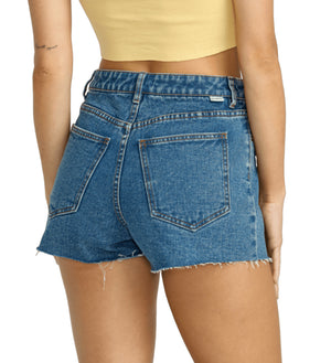 Ride the wave of style with our High Tides Denim Short in Deep Sea. These ocean-inspired shorts feature a high waist and frayed edges for a trendy, beachy look. Made with durable denim, these shorts will be your go-to for all your summer adventures. Catch them before they wash away!