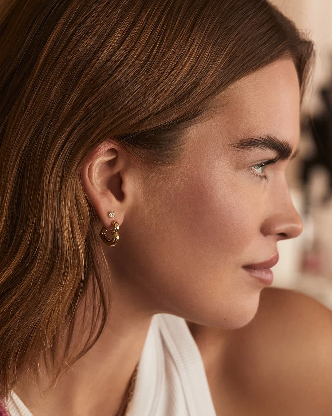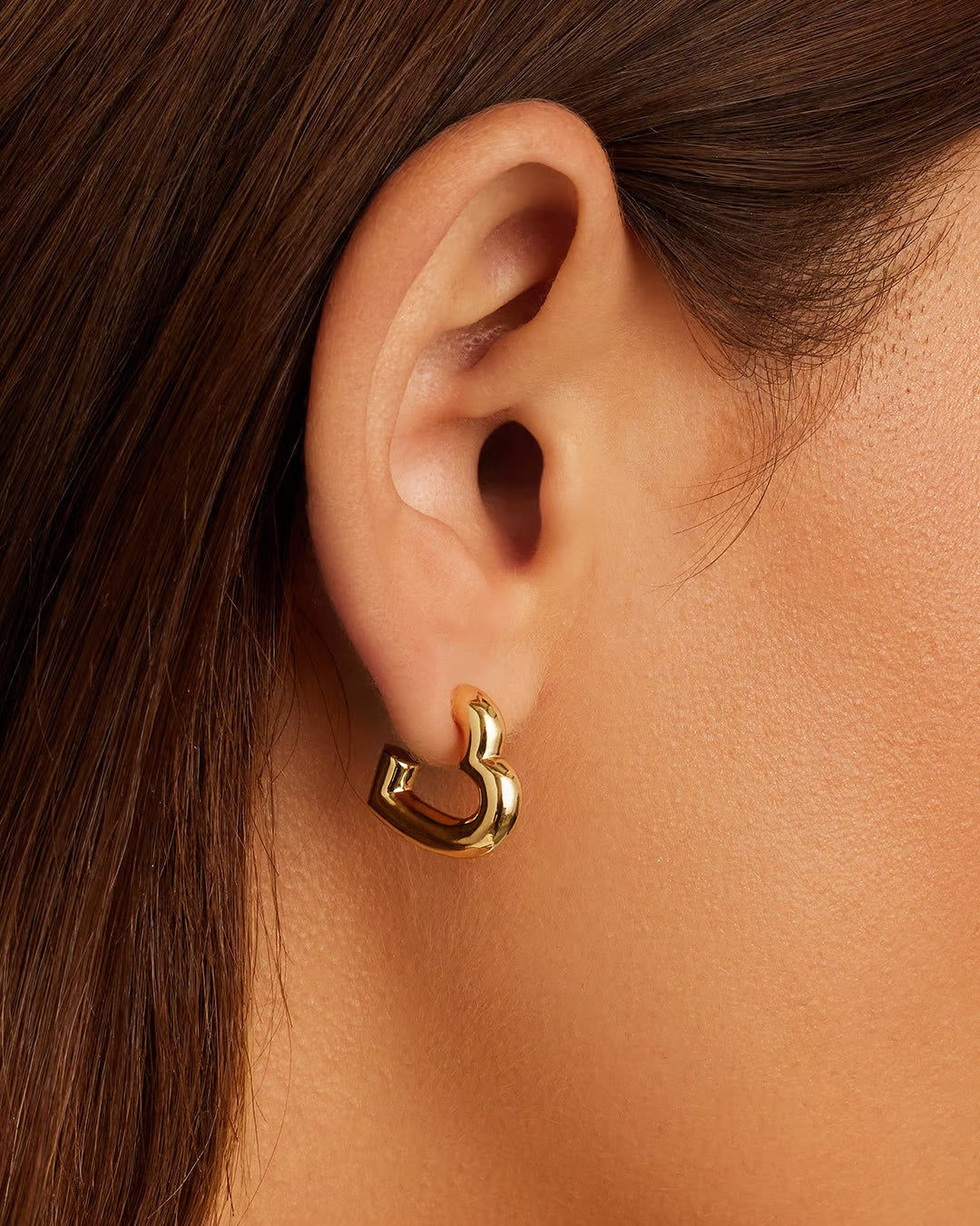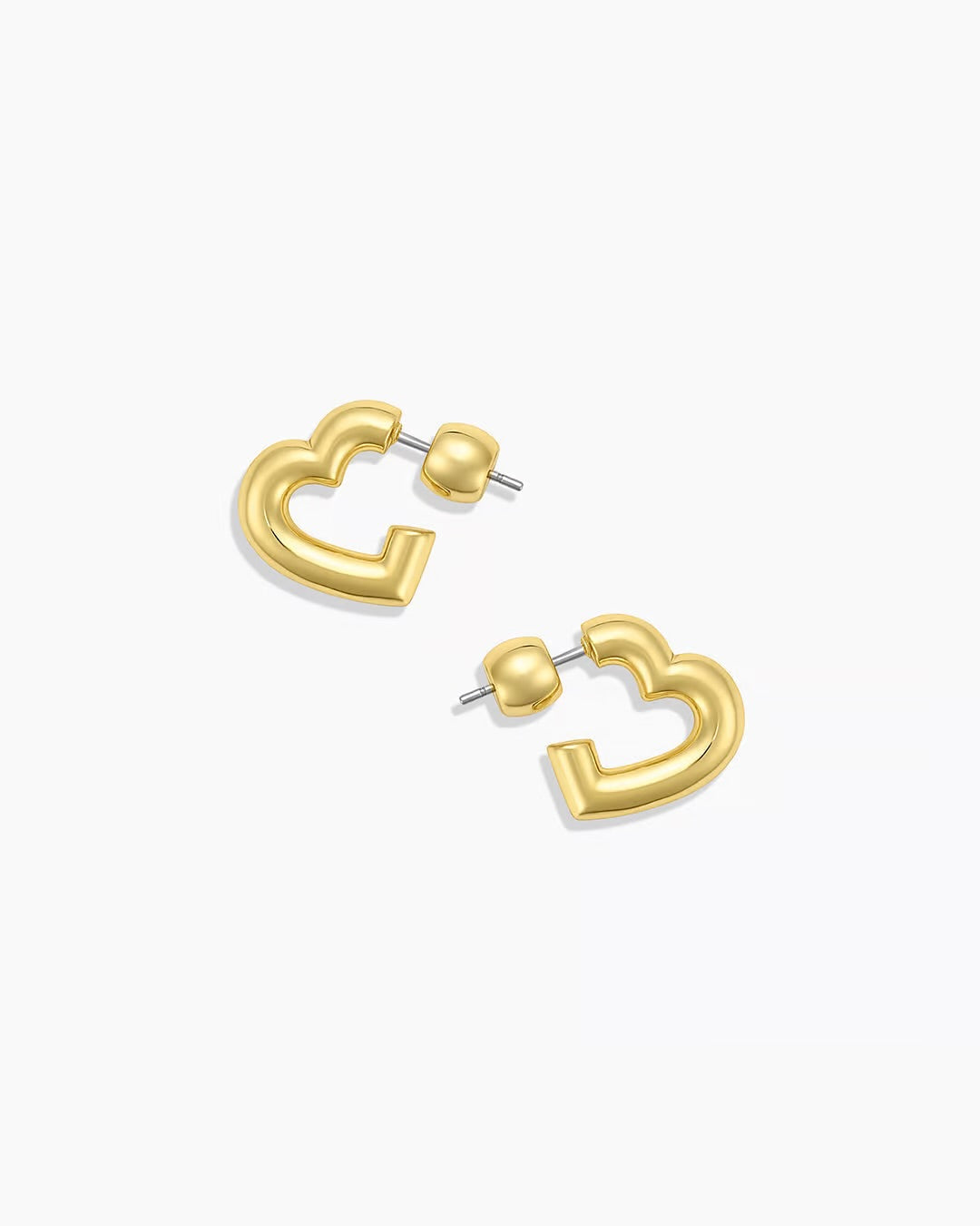 These lightweight, gold heart huggie earrings are both sweet and statement - wear them in your first piercing alongside your favorite huggies and studs.