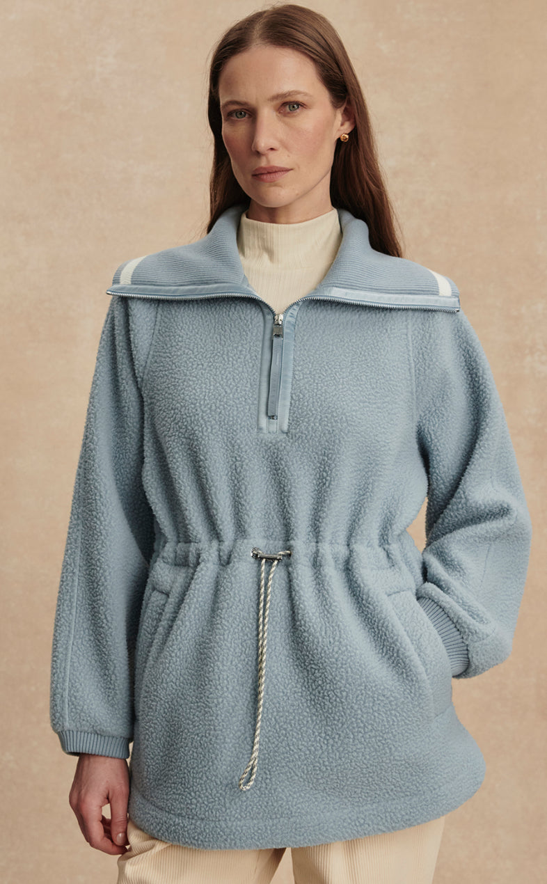 Stay warm and stylish with the Ashby Half Zip Fleece in Ashley Blue. Perfect for chilly days, this fleece features a half zip for easy on-and-off and comes in a trendy blue color. Get cozy in this quirky and fun fleece.