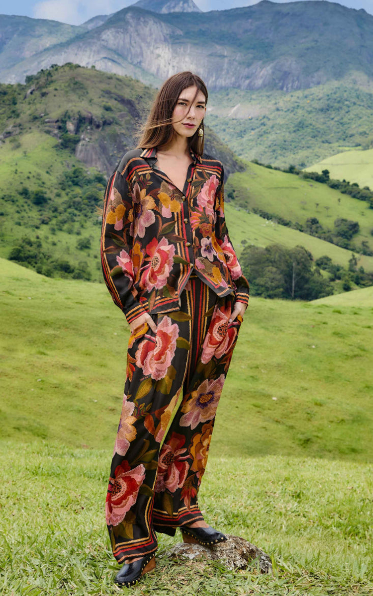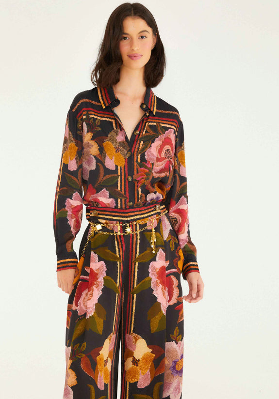 Chenille Flowers Black Pants - Three Sisters Boutique