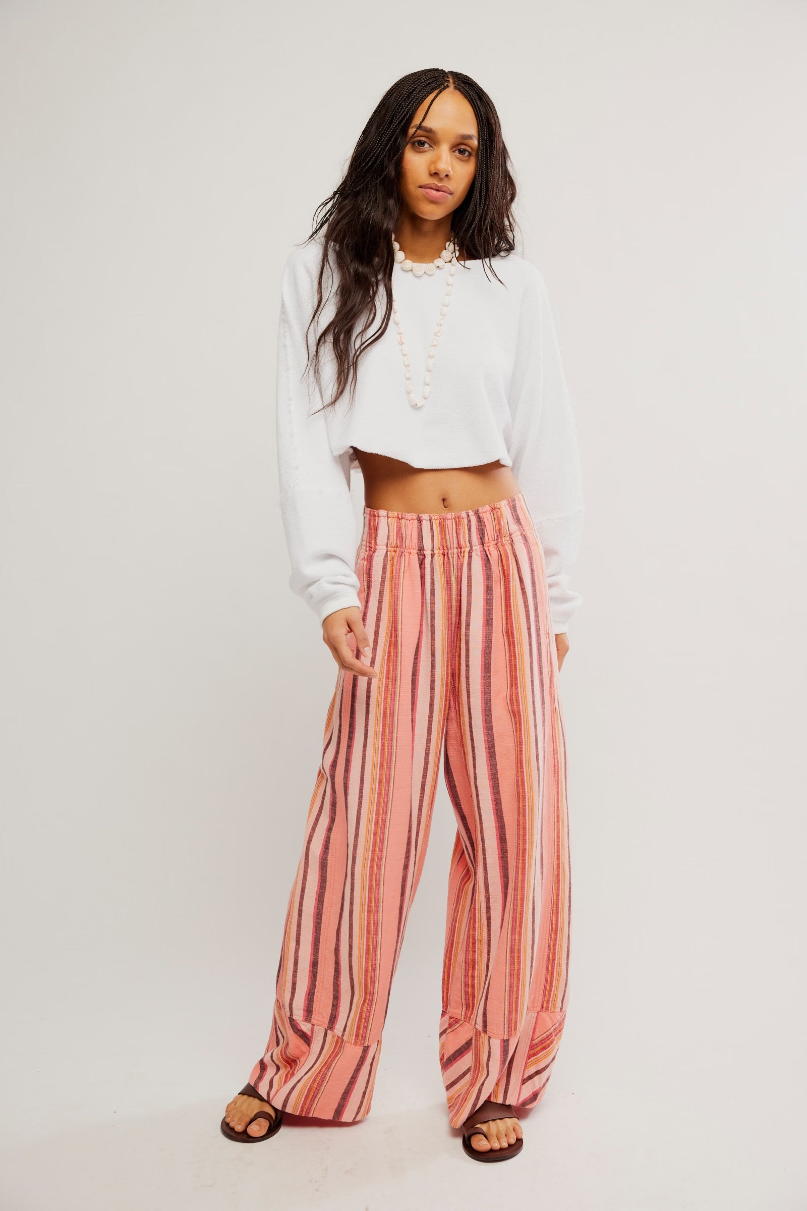 Days End Solar Linen Stripe | Soft Coral Combo Sunset hues meet everyday comfort in this breezy linen stripe. The soft coral palette pairs beautifully with crisp white stripes, creating a piece that transitions effortlessly from weekend brunch to evening strolls. Lightweight linen keeps you cool and collected, while the timeless stripe pattern ensures you'll reach for it season after season. Perfect for layering or wearing solo—this is the kind of piece that makes getting dressed feel like a mini vacation.