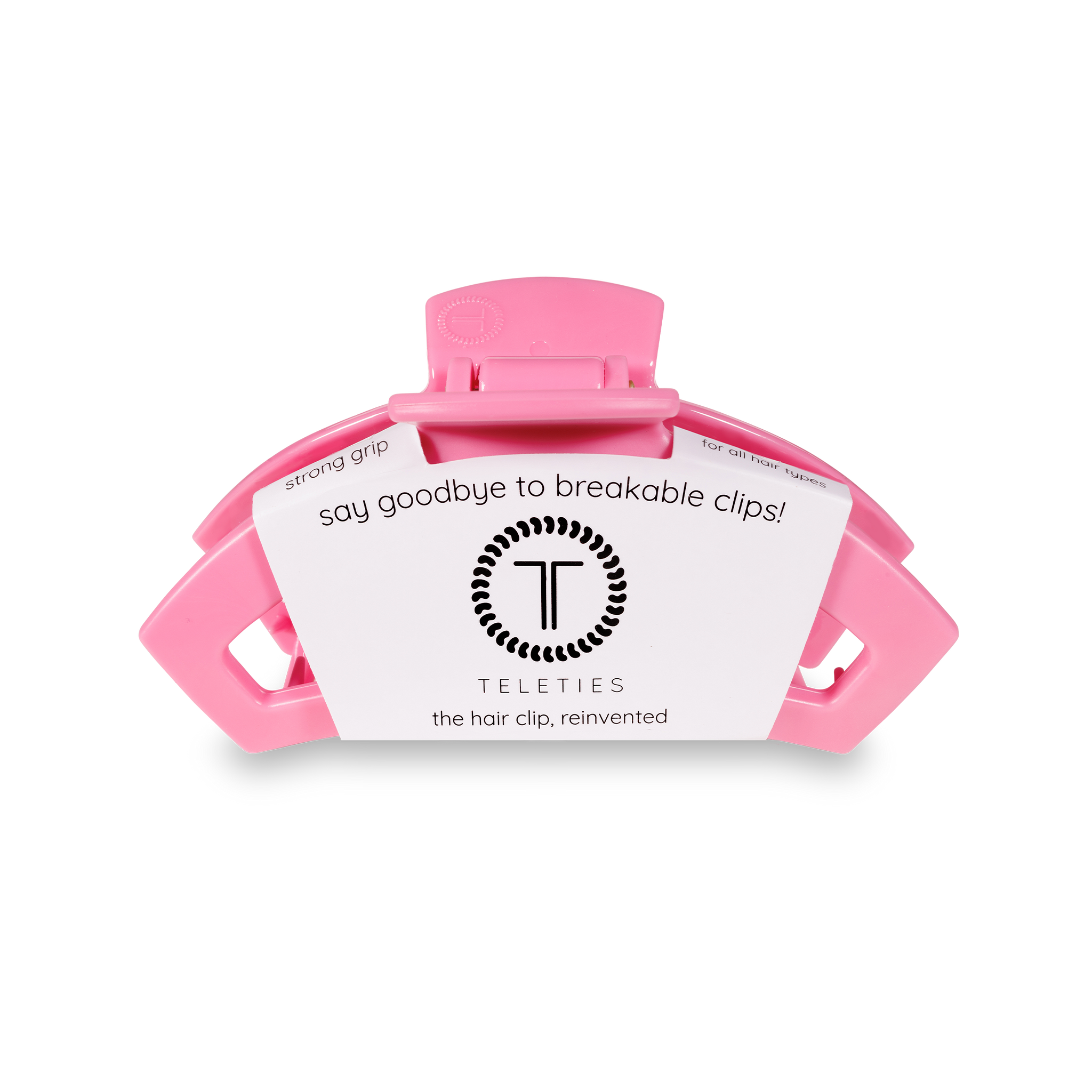 Our Open Hair Clip offers the same incredible advantages as our Classic Claw Clip, but with a unique open-style design that allows your hair to show through. Say goodbye to breakable clips! We have perfected the hair tie and now have re-invented the hair clip. Each clip has bendable teeth that take back to shape, they work on all hair types and have a strong hold. Hold your hair and enhance your style with the new TELETIES Clip! Medium clips are great for thick to medium thicknes